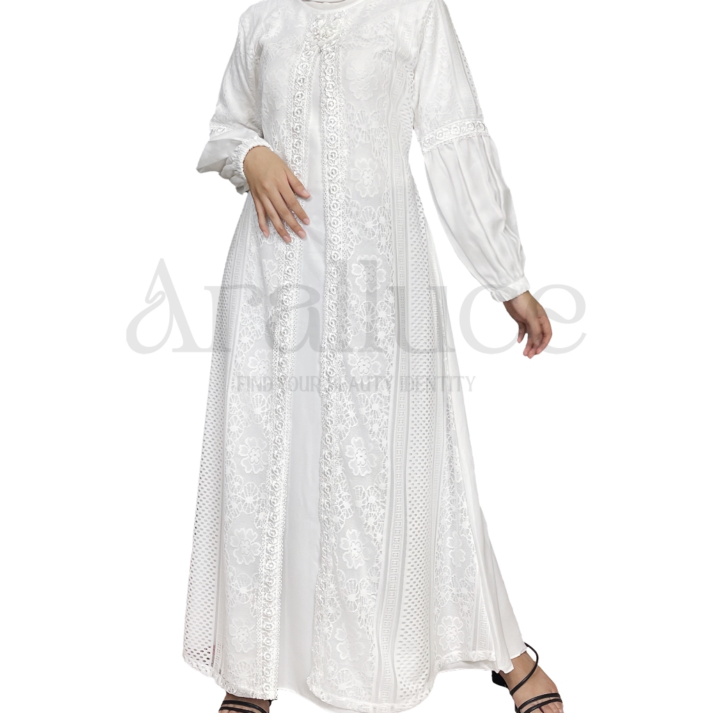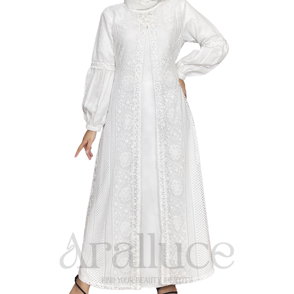 ARALLUCE • Baju gamis brukat putih mewah dan elegan ARL 020 - Gamis putih wanita kekinian terbaru