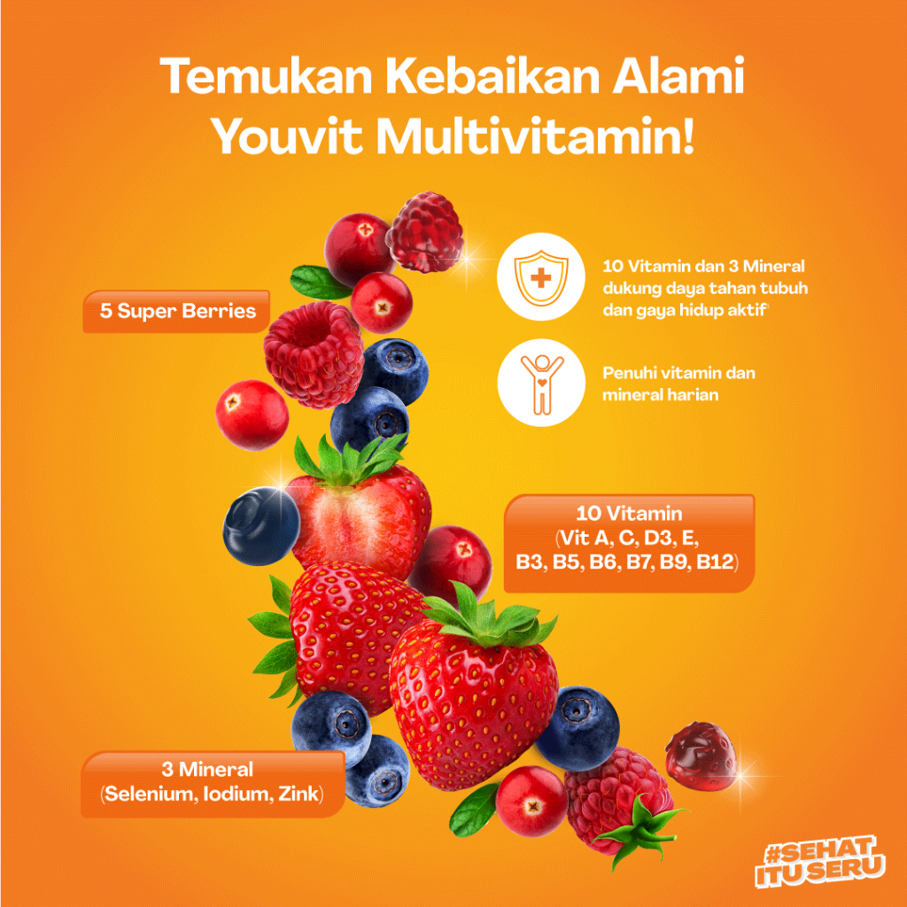 Multivitamin Gummy Dewasa untuk Imunitas | Youvit Multivitamin Dewasa 30 Hari dengan Vitamin C, Vitamin D, Zink & Superberries