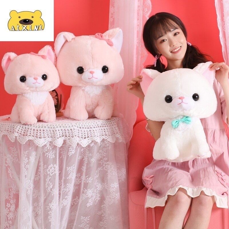 Boneka Kucing Berbulu Halus 35cm Lucu Plush Cute Cat Stuffed Animal Bahan Plush Lembut, Hadiah Anak Ulang Tahun
