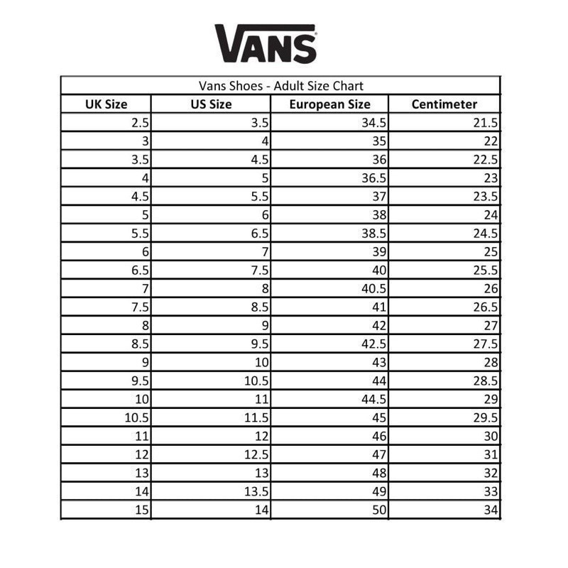 US 4.5 // EUR 36, US 5 // EUR 36.5, US 5.5 // EUR 37, US 6 // EUR 38, US 6.5 // EUR 38.5, US 7 // EUR 39, US 7.5 // EUR 40, US 8 // EUR 40.5, US 8.5 // EUR 41, US 9 // EUR 42, US 9.5 // EUR 42.5, US 10 // EUR 43, US 10.5 // EUR 44, US 11 // EUR 44.5, US 11.5 // EUR 45, US 12 // EUR 46