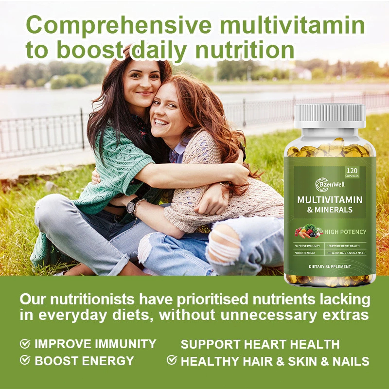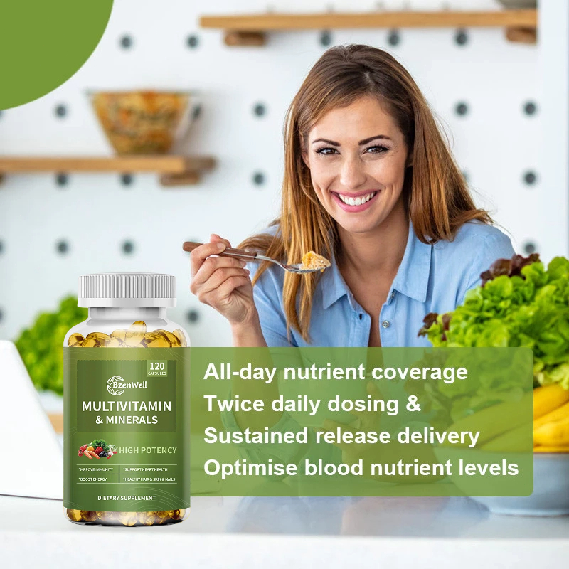 BzenWell Multivitamin & Mineral Capsules With Iron, Methylfolate, Zinc, Vitamins D3 & K2 Boost Energy and Immunity Supports Heart & Hair & Skin and Nail Health