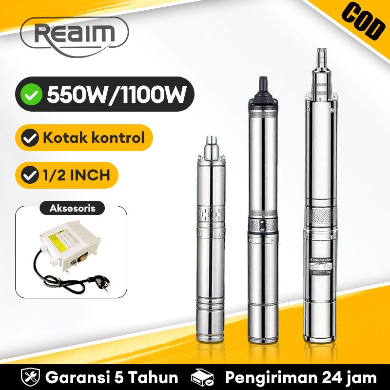 REAIM Pompa Satelit Pompa Air Sumur Dalam 550 Watt 1 inch Stainless Steel Submersible Pump