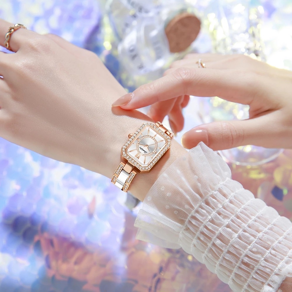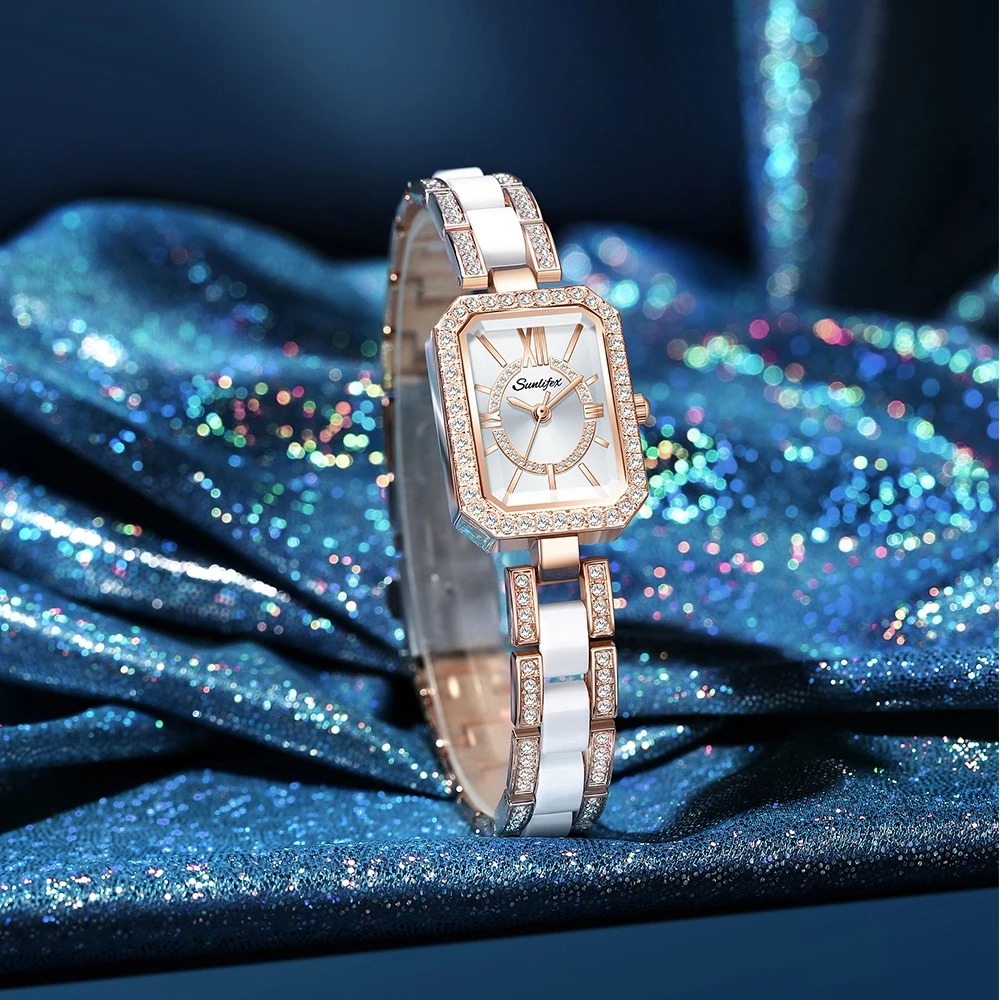 Jam tangan - Jam tangan cewek - Sunlifex Jam Tangan Wanita 3034 Korea Fashion Berlian Tali Keramik Original New