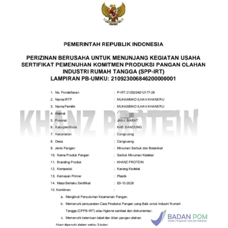KHANZ Whey Protein Nabati 1000gr Susu Kedelai Bubuk Tinggi Protein –Coklat/Vanilla