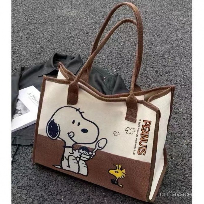 Women Japanese Style Snoopy Canvas Bag Handbag Large Capacity Single Shoulder Commuter Tote Bag