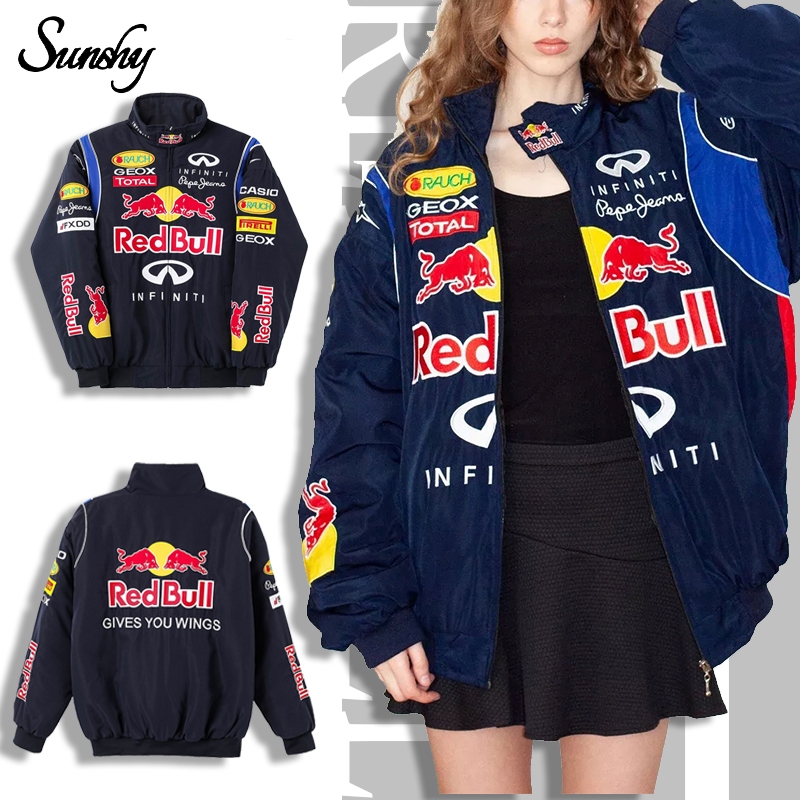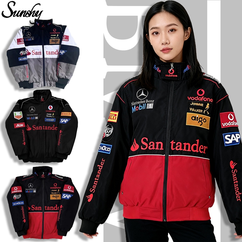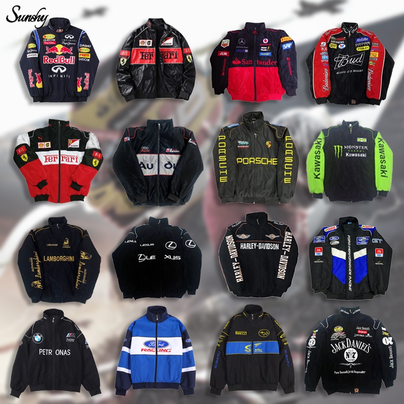 Sunshy Jaket Parasut Pria Ferrari F1 Bordir Vintage Racing Jacket Unisex With Zipper Waterproof Casual Coat