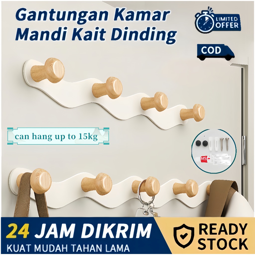 Hook 4 5 6 Gantungan Aksen Kayu Kamar Mandi Toilet Kamar Tidur Anak Ruang Tamu