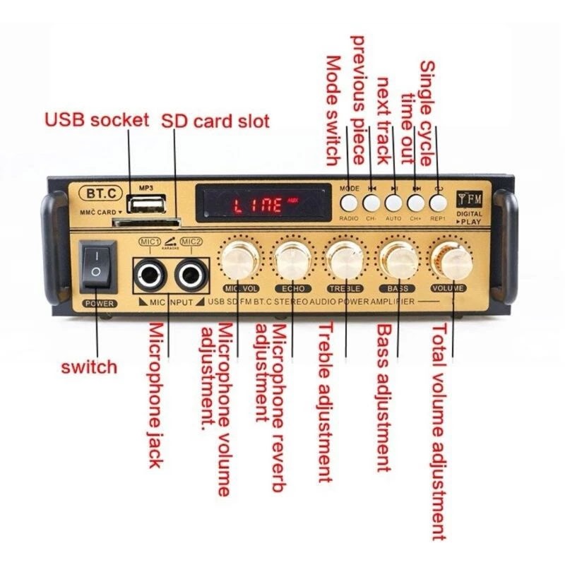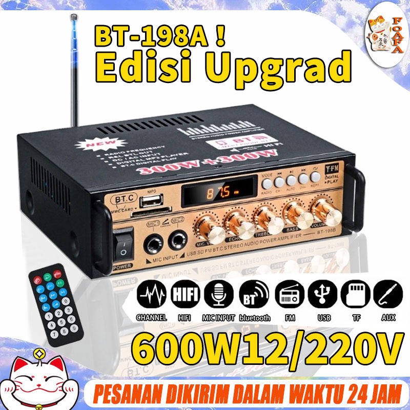 Power Amplifier Bluetooth 600W BT-198E Karaoke Stereo HiFi Audio System dengan Wireless Echo