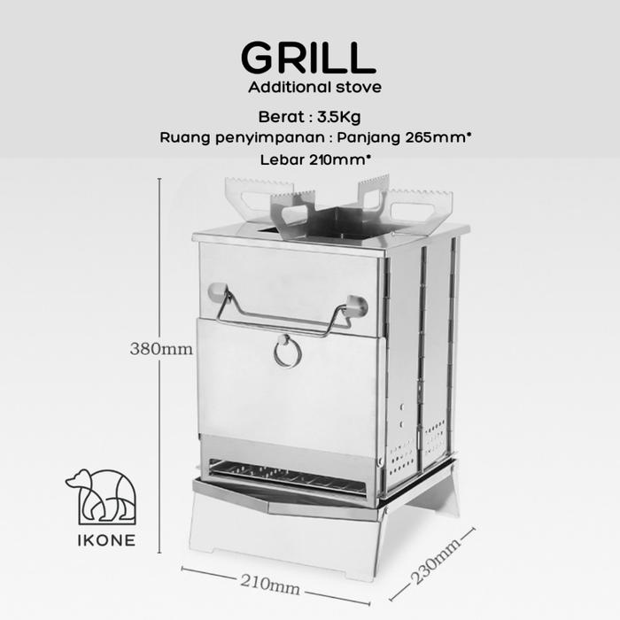 IKONEGRILL Alat Panggang Camping Kompor Portable Outdoor Mini Firewood Stove Tungku Pembakaran