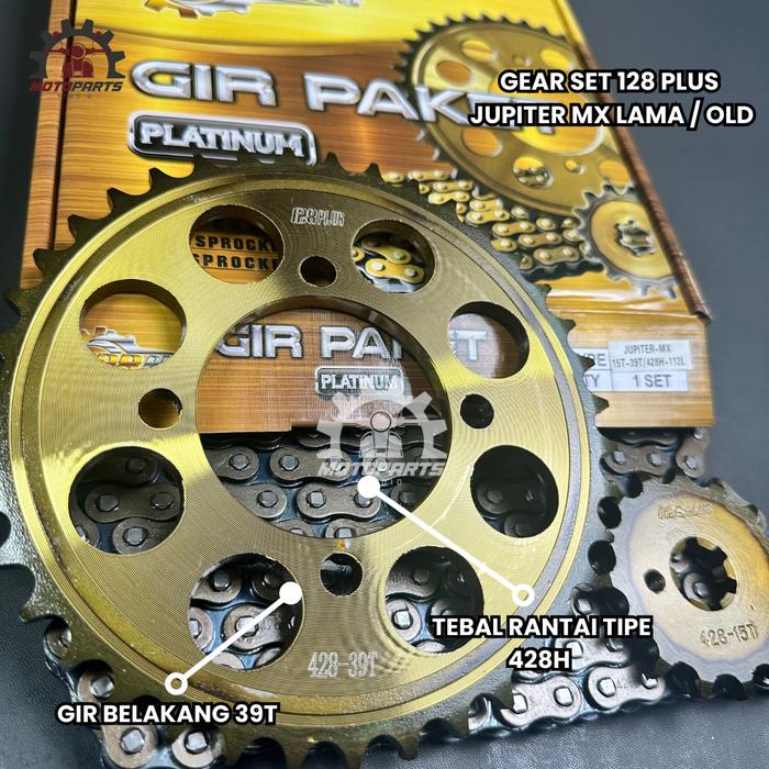 GEAR GIR SET GIR PAKET JUPITER MX LAMA OLD 15 39T 428H Gold Motor Motorcycle Rantai Roda Racing
