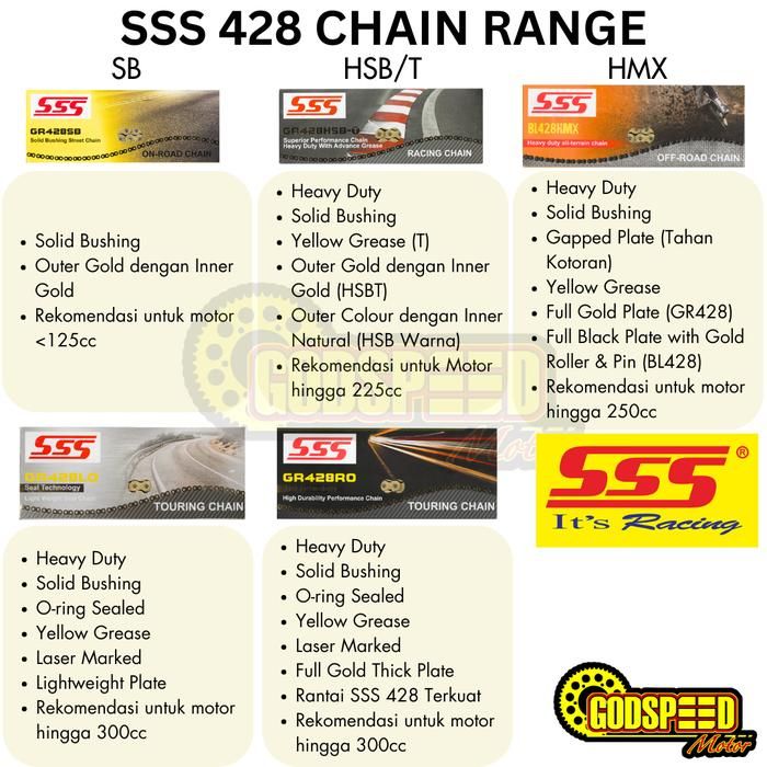 GEARSET SSS 428 BAJA SUPRA X 125 REVO BLADE KHARISMA RANTAI SSS HSBT GOLD / REGINA ORO RH2 ZRT