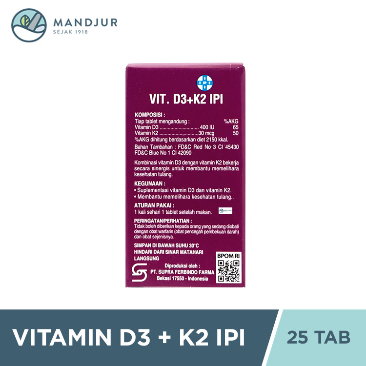 IPI Vitamin D3 + K2 25 Tablet - Suplemen Vitamin D3 dan K2