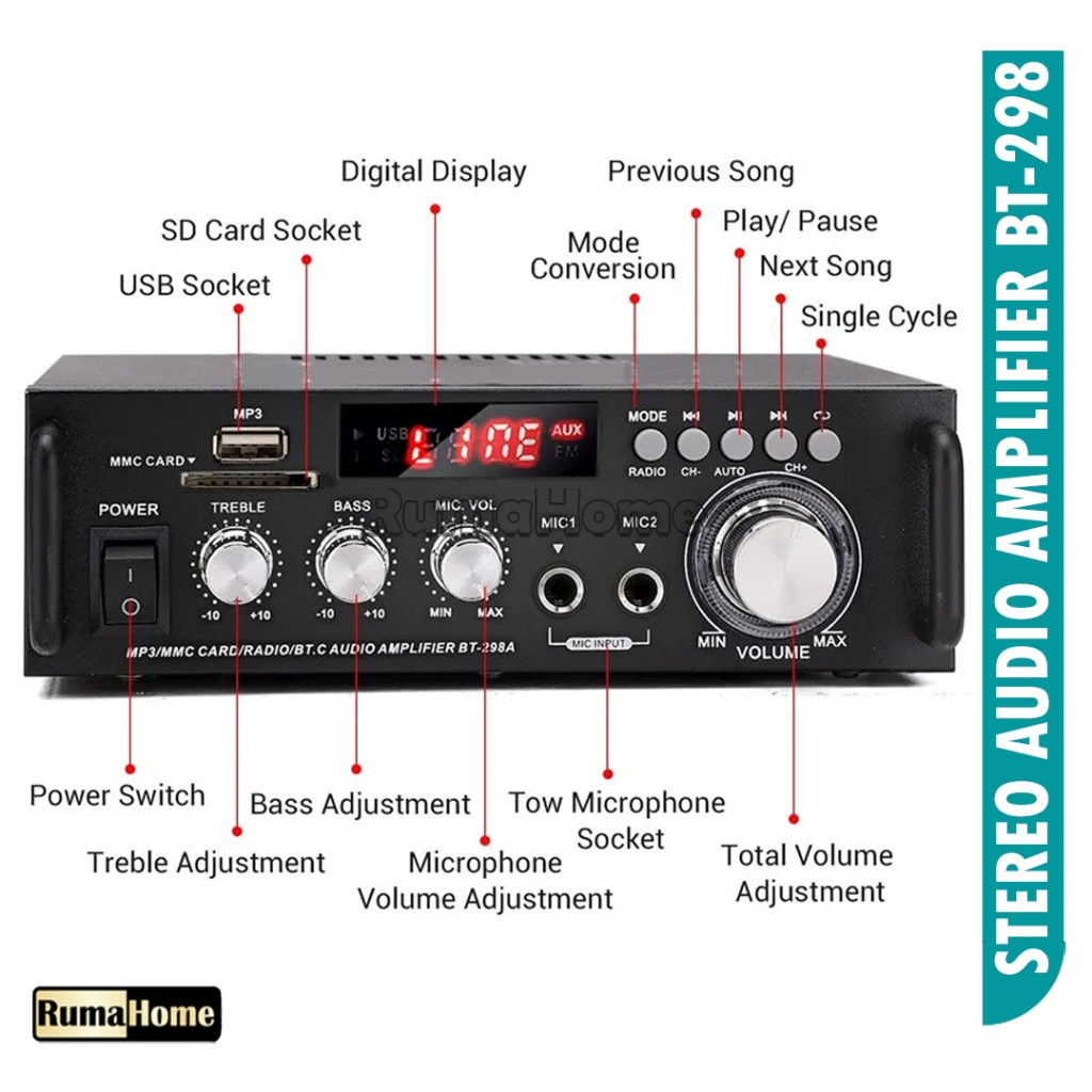 Amplifier Bluetooth Karaoke 600W BT-298/AK-45/AK-698/BT-296 - FM Radio EQ Audio Home Theater