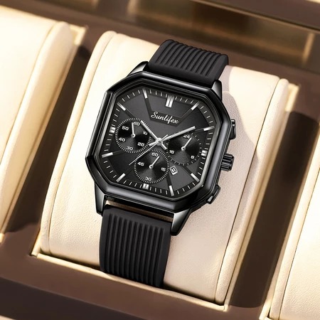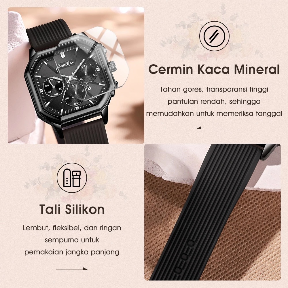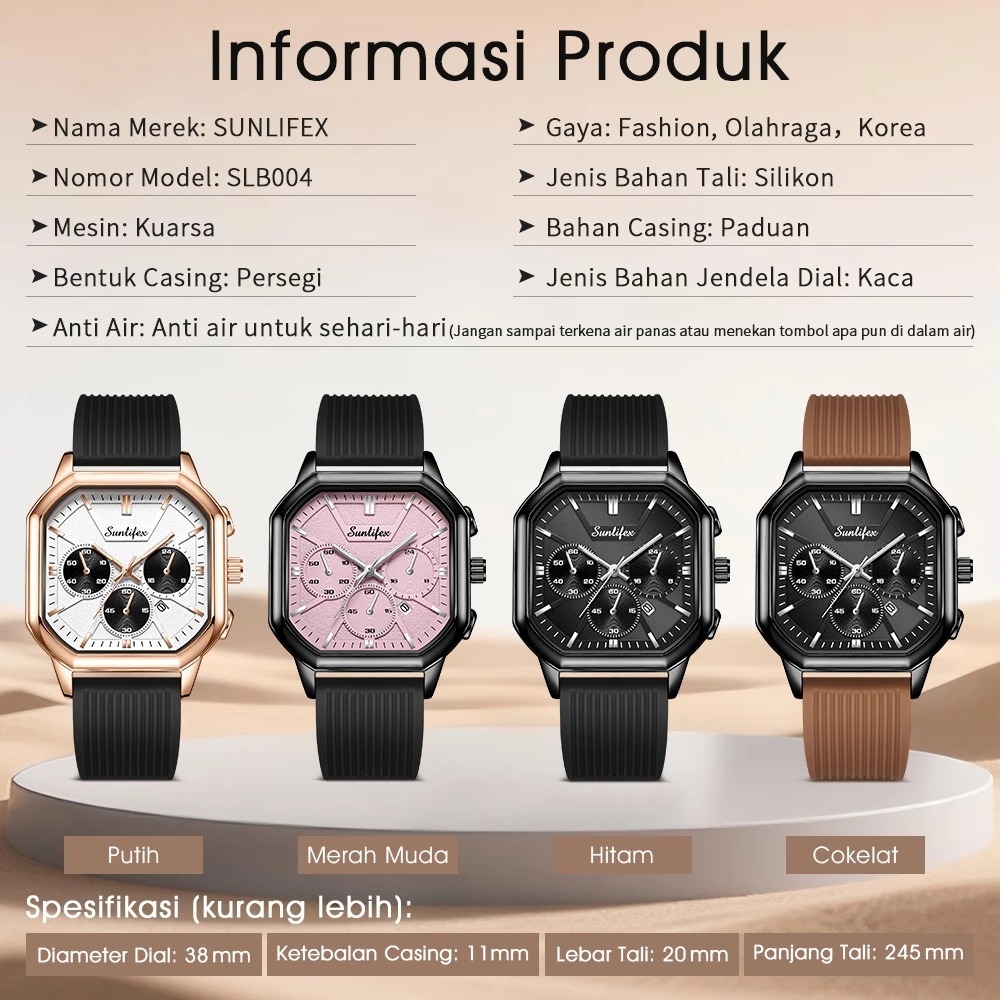 Jam tangan - jam tangan cewek - Sunlifex Jam Tangan Wanita Korea Elegan Tanggal Tali Silikon Kuarsa Original B004