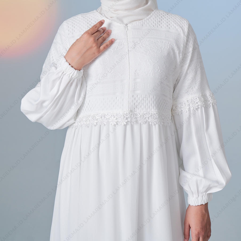 Baju Gamis Putih LM-048 Wanita Simple Elegan Dan Mewah | Gamis Putih Brukat Pesta Kondangan Modern Terbaru | Dress Brokat Kondangan Terbaru 2023 Kekinian