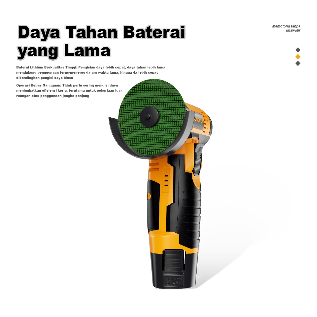 Corolla Portable angel Grinder Cordless 3 inci Mesin Gerinda Tangan Elektrik Gerinda Baterai Portable Alat Pemotong / Po
