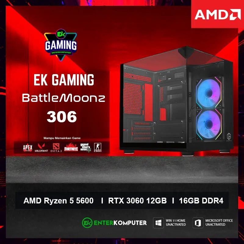 EK Gaming BattleMoonz 306 - PC Rakitan Gaming Ryzen 5 5600 RTX 3060 12GB RAM DDR4 16GB - Enter Komputer
