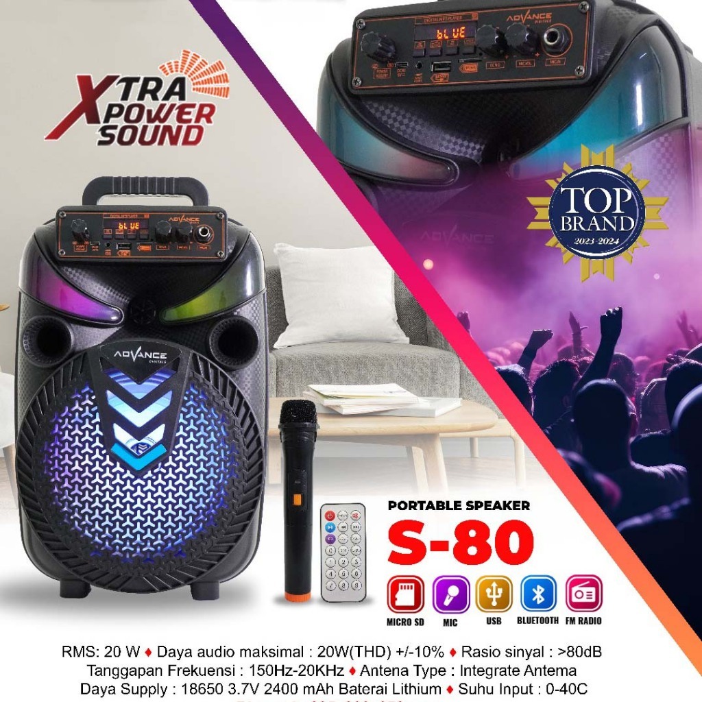 Advance H801N atau S80 Speaker Bluetooth Portable 8 inch dengan Mic Wireless Garansi Resmi advance 1 tahun