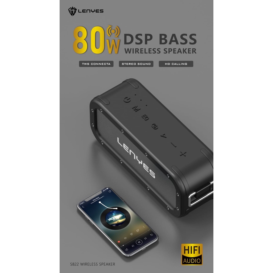 LENYES S822 80W Ultra Bass Speaker Wireless Bluetooth 5.0 DSP Hifi Stereo Sound TWS