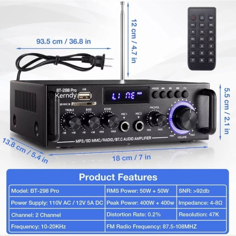 (Model 2024)Amplifier KERNDY BT-298 PRO ECHO Bluetooth EQ Audio Ampllifier Karaoke Home Theater FM Radio 800W