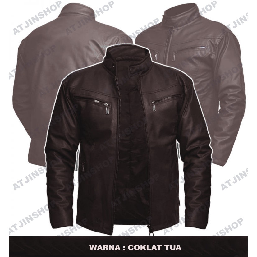Atjin-Jaket kulit Motor Pria Model Racing Bahan Ferrari [ Full Black dan Full Brown]