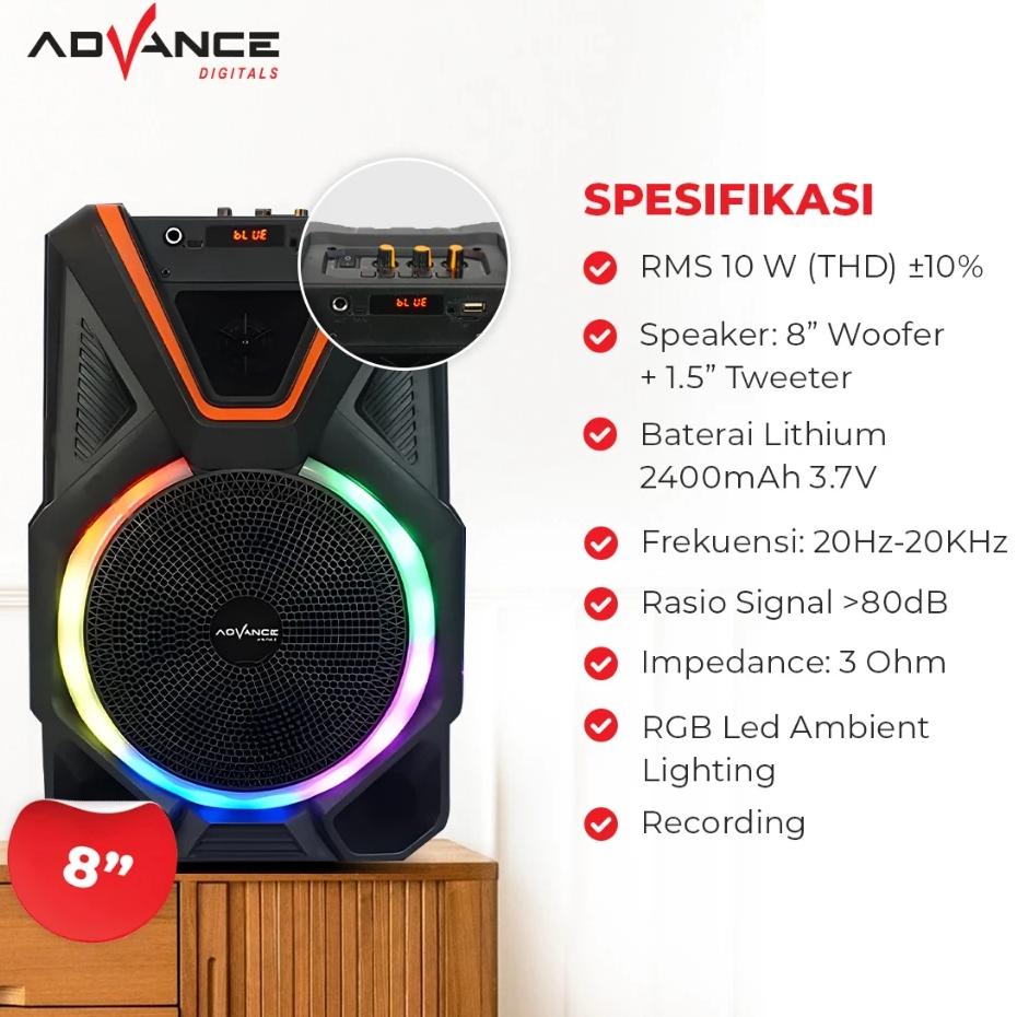 Advance KS821 Speaker Bluetooth Karaoke Super Full Bass Aktif BONUS 2 Pcs Mic Wireless
