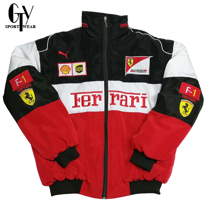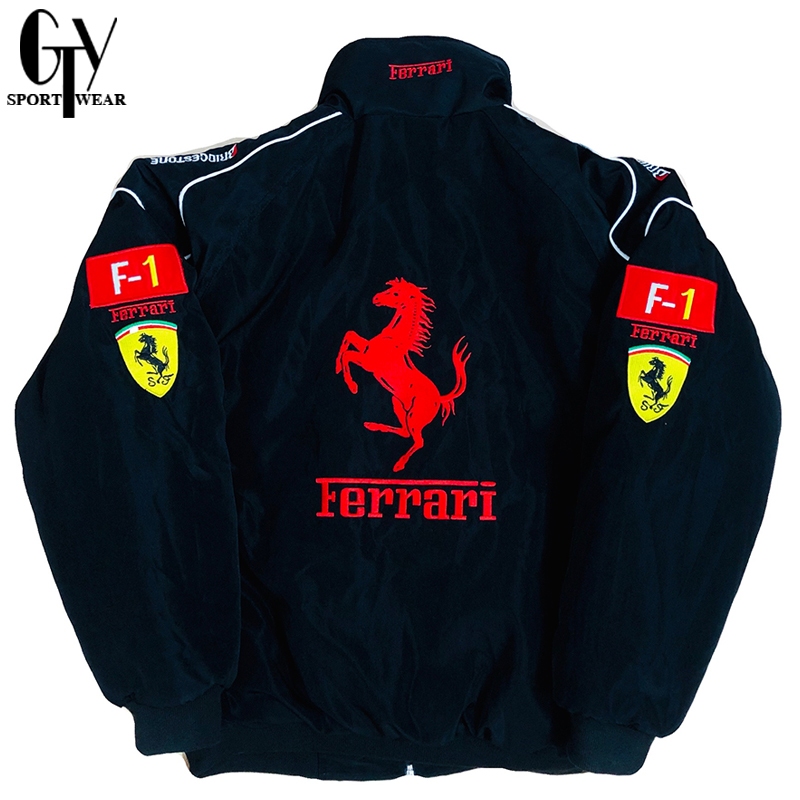 Gty Ferrari F1 Racing Jaket For Men Black Retro Motor Couple Jacket With Zipper For Women