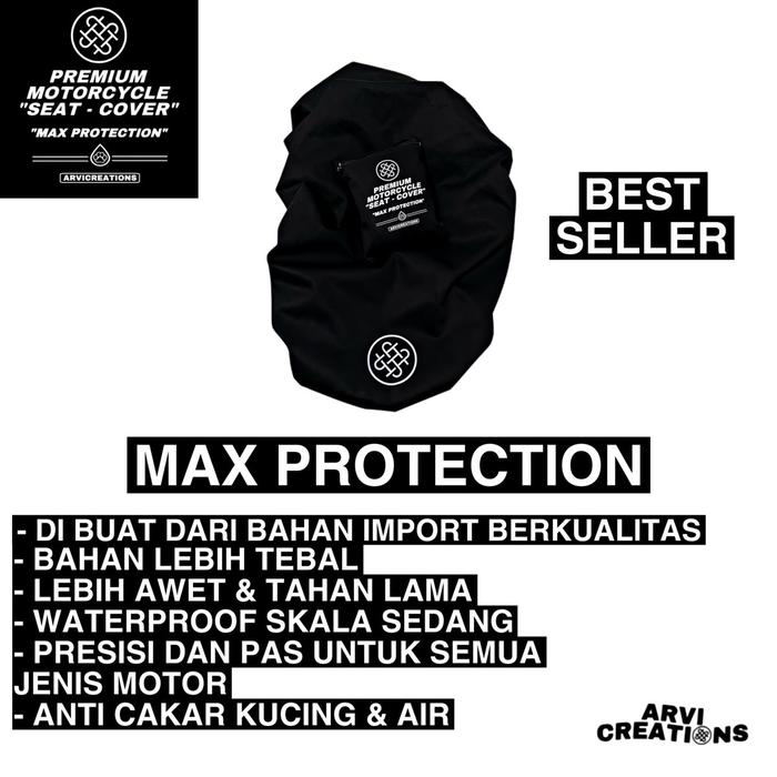 Sarung Jok Motor Anti Cakaran Kucing Dan Air Arvi Max Protection Motorcycle - Jok Kecil, Hitam