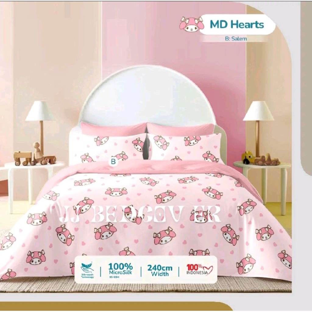 JJ Bedcover - BedCover Set Lengkap + Sprei - Two Tone - Bahan Microtex Disperse - MOTIF MELODY HEARTS PINK