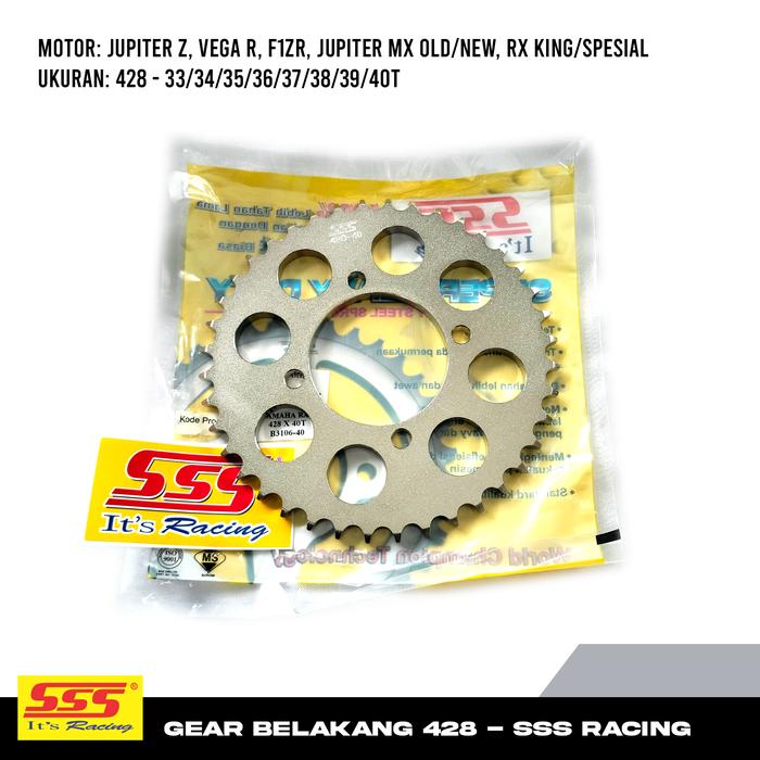 SSS Racing Ger Gir Gear Belakang 415/428 SSS RX King Jupiter Z F1ZR Ukuran 30T-42T Warna Krom/Gold
