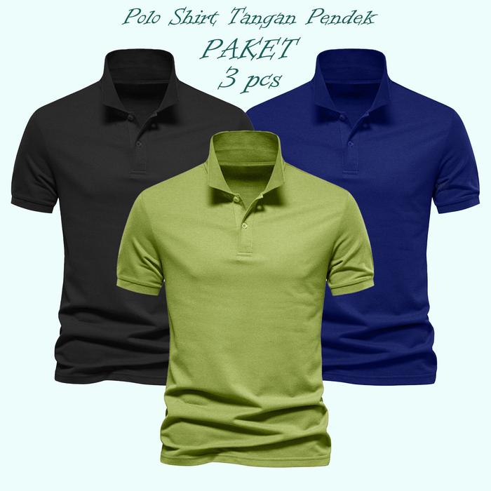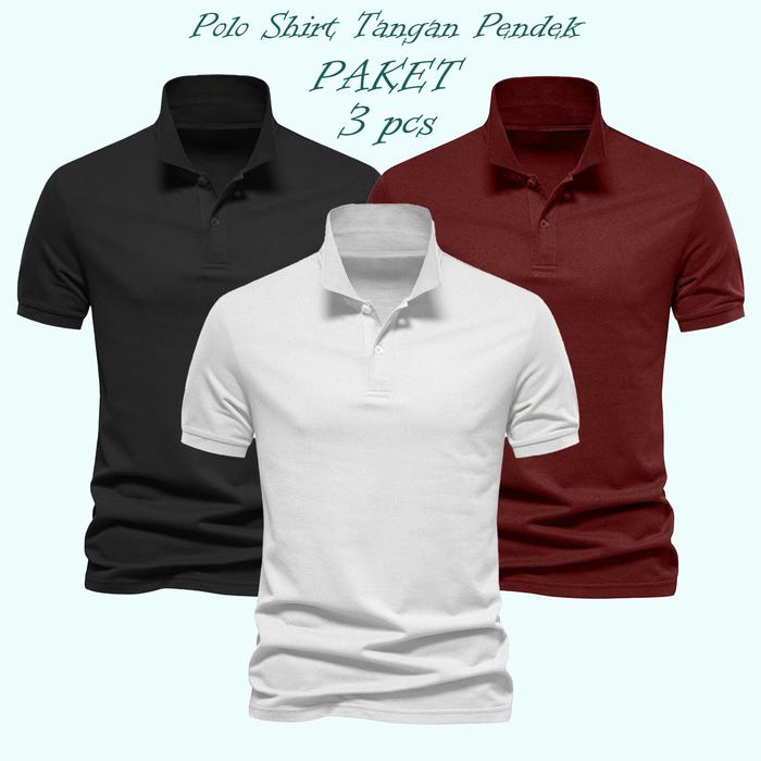 GPS / PAKET 3 pcs Polo Shirt Pria / Kaus Polos Lengan Pendek / Polo Shirt Seragaman - Hitam=Putih=Maron M