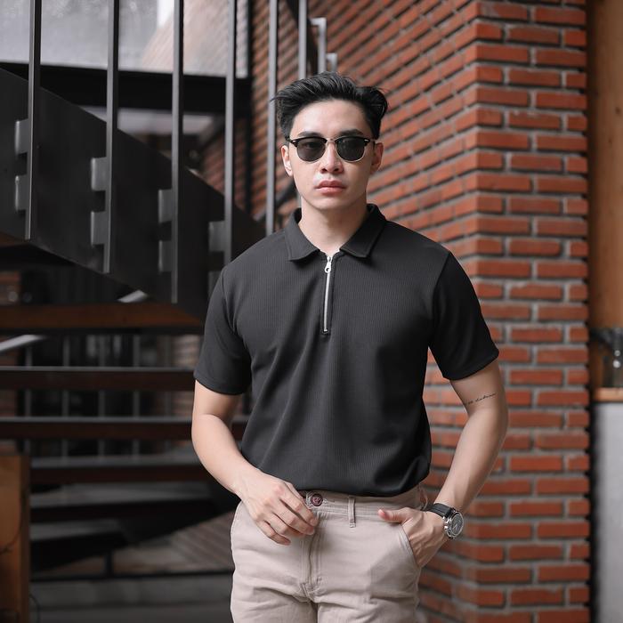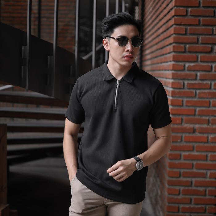 CREDO Polo Shirt Pria Kerah Knit Premium Zipper ORIGINAL CRD Slim Fit Kaos Basic Pendek - Black ZIPPER Size M