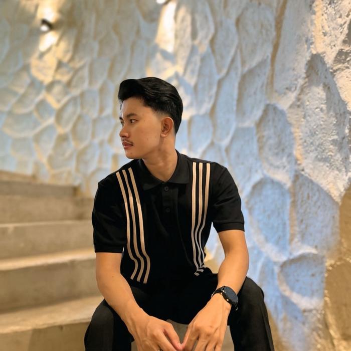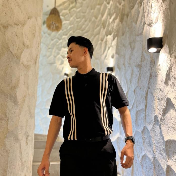 BLACK_OMET Polo Shirt Black kombinasi line Pria - M