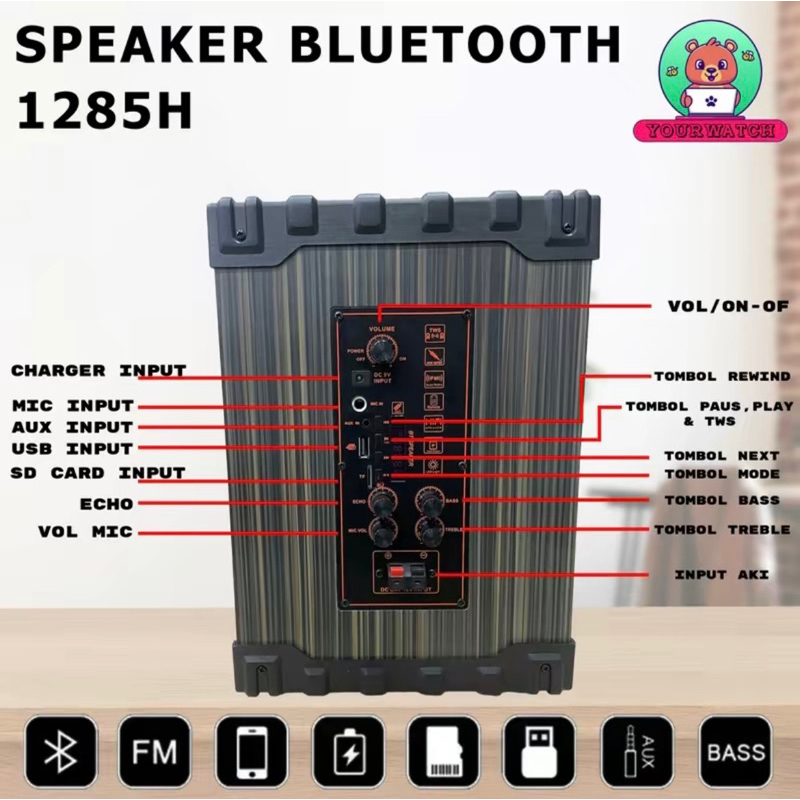 BRAIN POWER PORTABLE QS-1285H DOUBLE SPEAKER FULL BASS SQUARE FREE 2 MICROPHONE WIRELESS