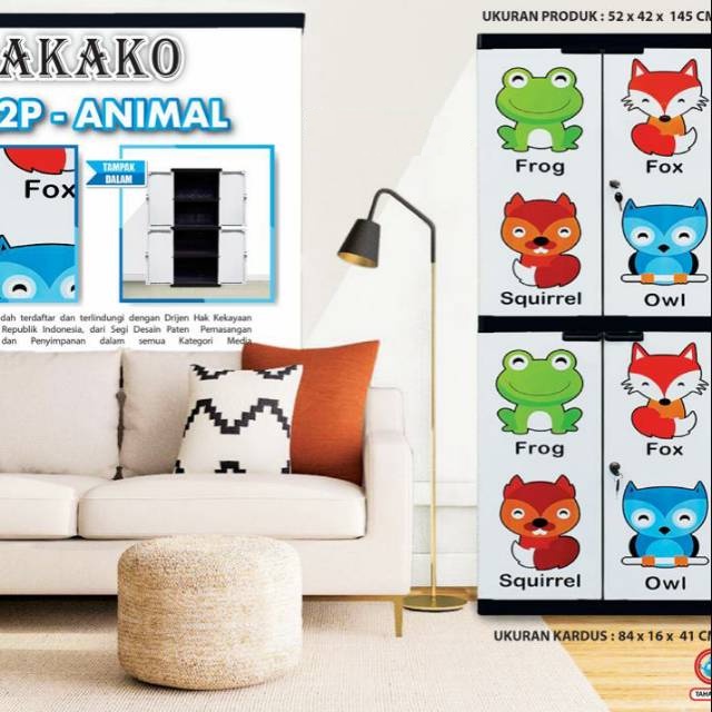 Lemari Pakaian Plastik 2 Pintu 4 Susun LA2P AKAKO TAYO JERAPAH OWL KUNCI KOKOH KUAT