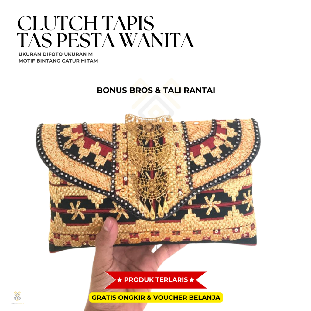 CLUTCH TAPIS LAMPUNG / TAS PESTA LAMPUNG - TAS CLUTCH MOTIF BINTANG CATUR HITAM UKURAN S,M,L -TAS PESTA WANITA - LAMPUNG