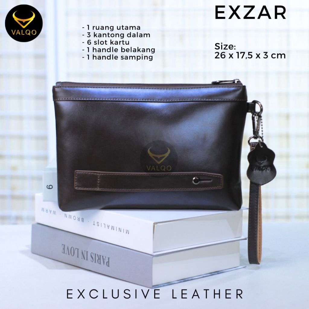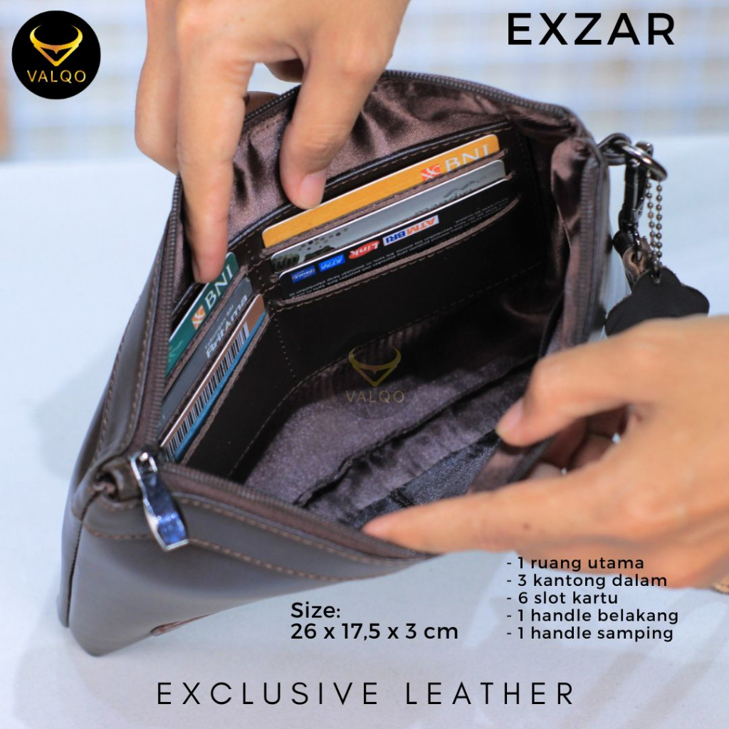 Valqo EXZAR Clutch Kulit Sapi Pouch Kulit Handbag Wanita Pria 6 Slot Kartu Tas Tangan