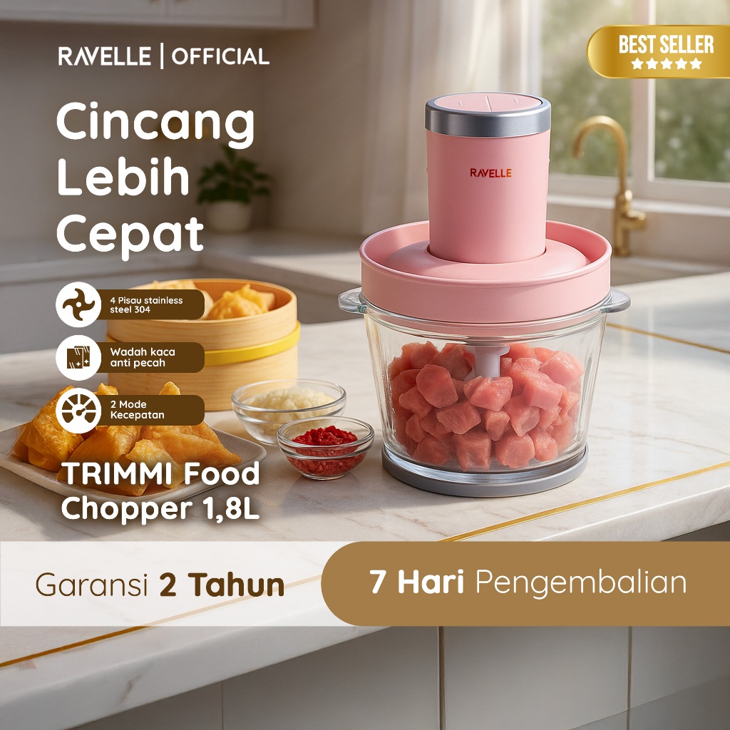 badgeRAVELLE TRIMMI Premium Food Chopper 1,8L - Penghalus Bumbu dan Penggiling Daging