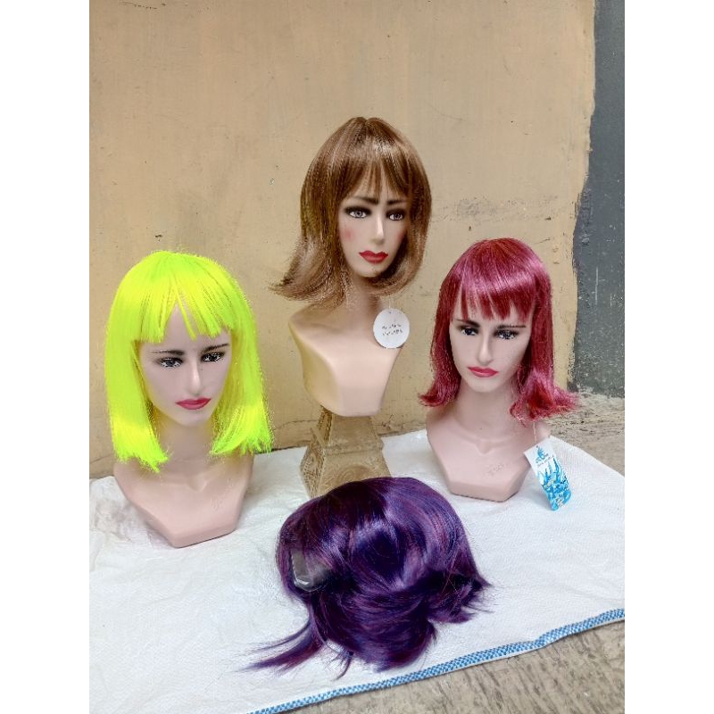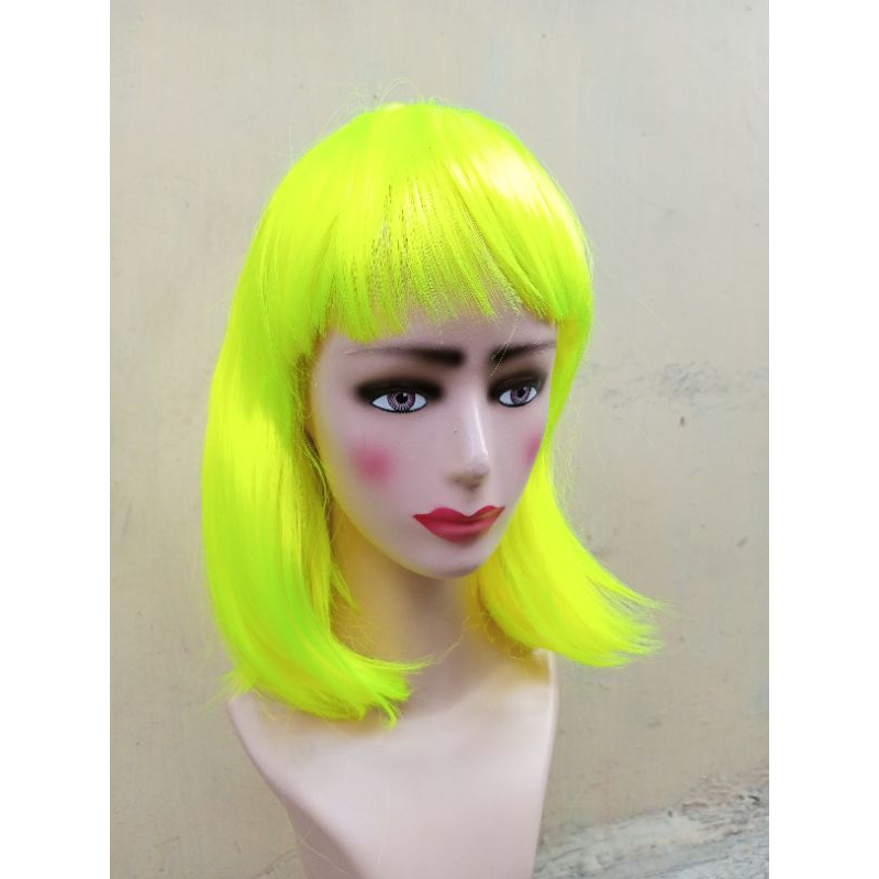 WIG BOB LURUS SEBAHU PONI WARNA KUNING NEON-UNGU-PIRANG-MERAH MUDA