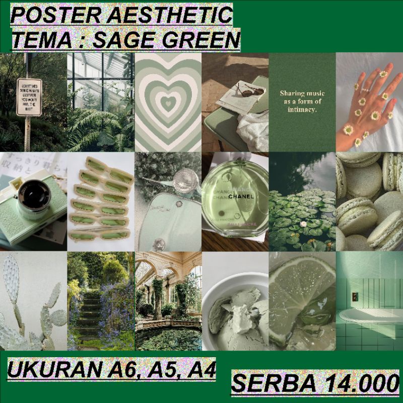 Poster Aesthetic SAGE GREEN 16-20 Pcs Hiasan Estetik Dinding Wall Decor Aesthetic - Sage Green