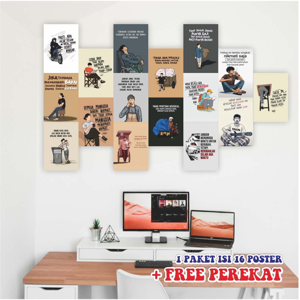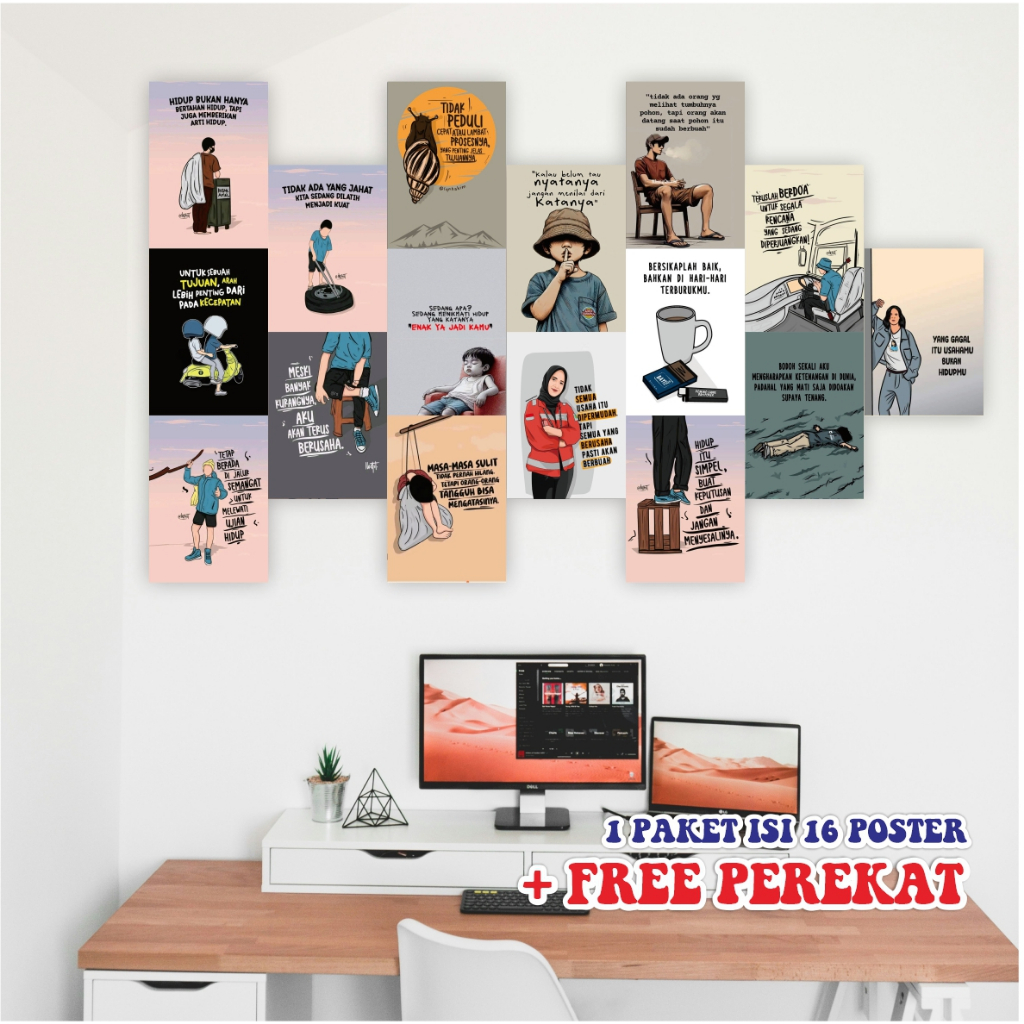 Paket Poster Dinding Aesthetik Quotes Isi 16 Lembar | Ukuran A6/A5 + Free Perekat