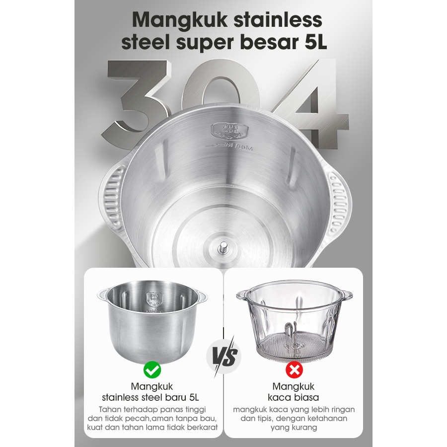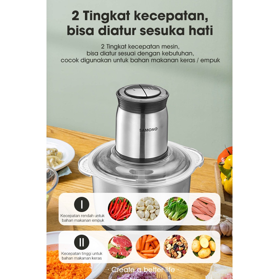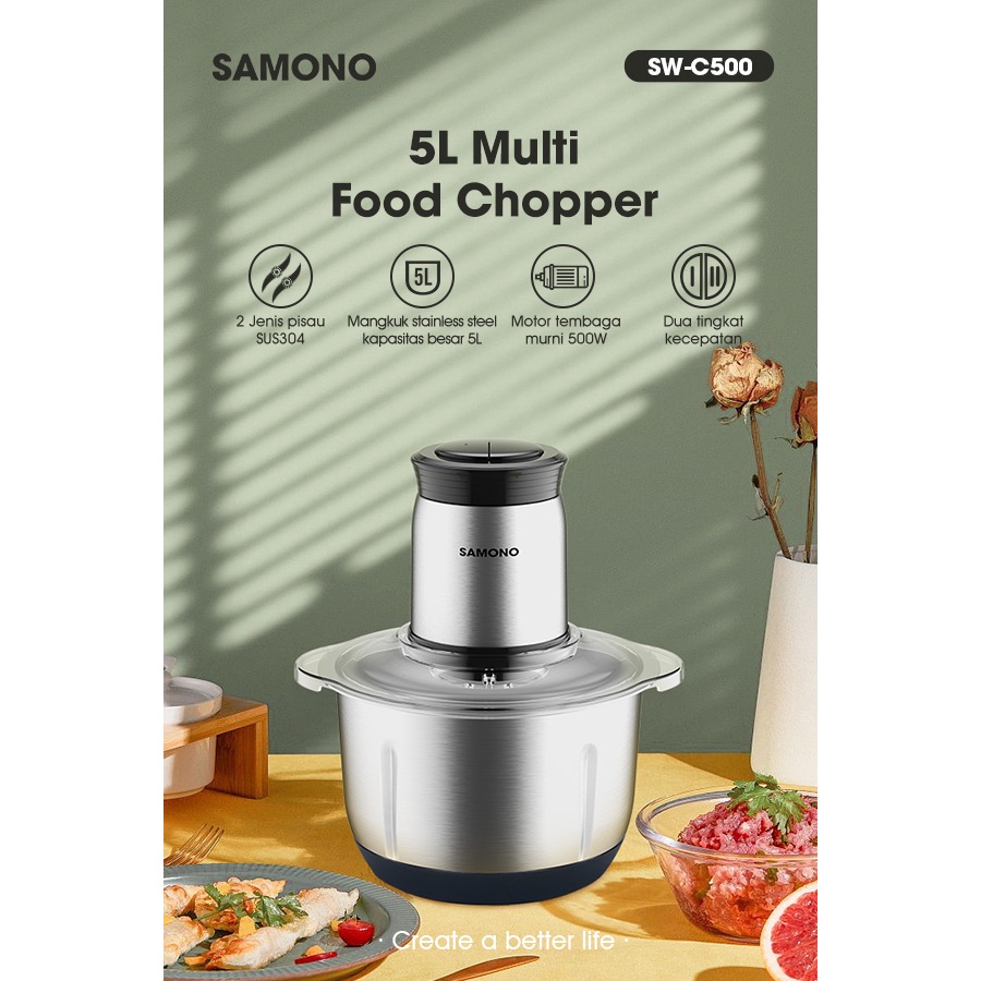 badgeSAMONO Food Chopper Stainless Steel 5 Liter | coper daging dan bumbu | chopper daging dan bumbu | samon