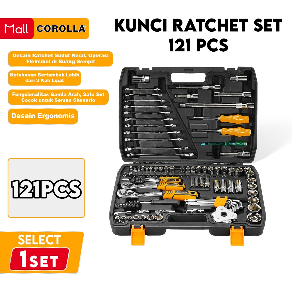 Corolla Set Perlengkapan Kunci Ratchet Cocok untuk Perbaikan Mobil, Pemasangan Peralatan Rumah Tangga dan Perawatan Mesi