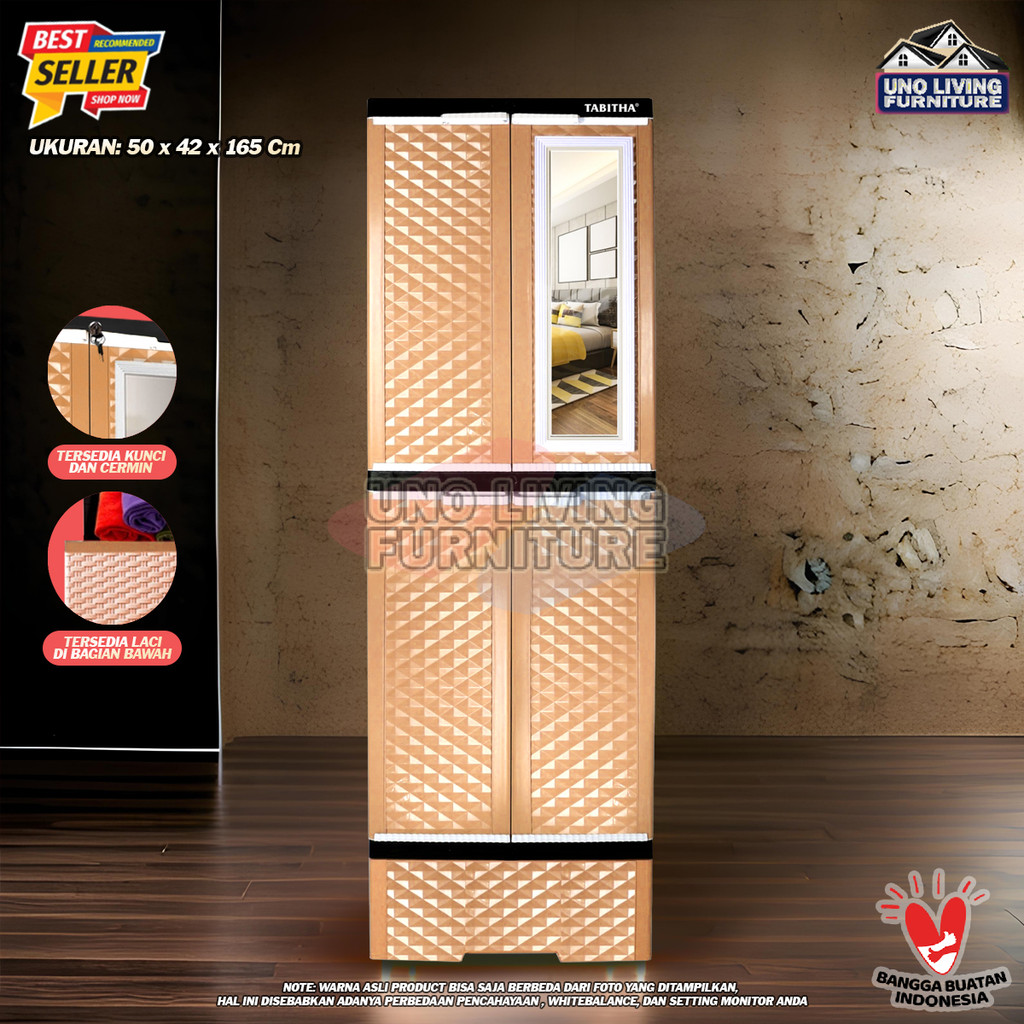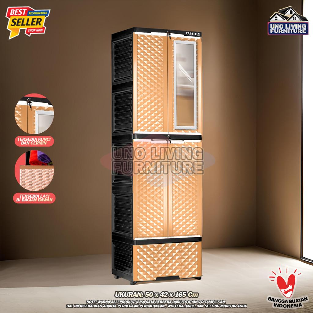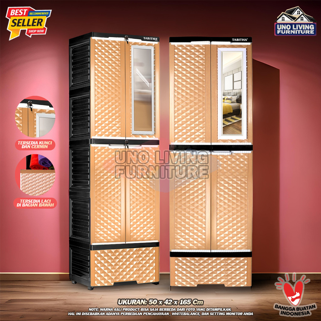 Lemari Pakaian Plastik Gantung dan Laci Lemari Pintu Rak Serbaguna LS2PL TABITHA Dengan Cermin