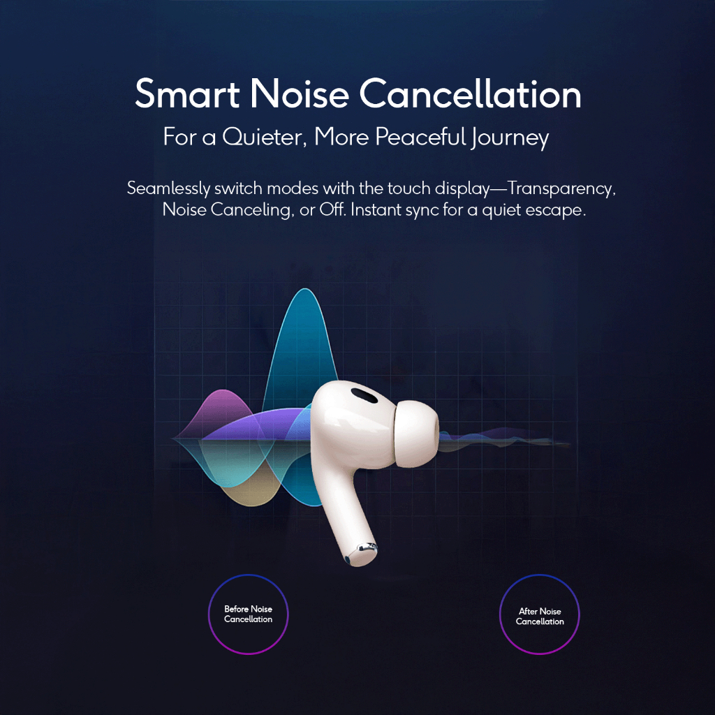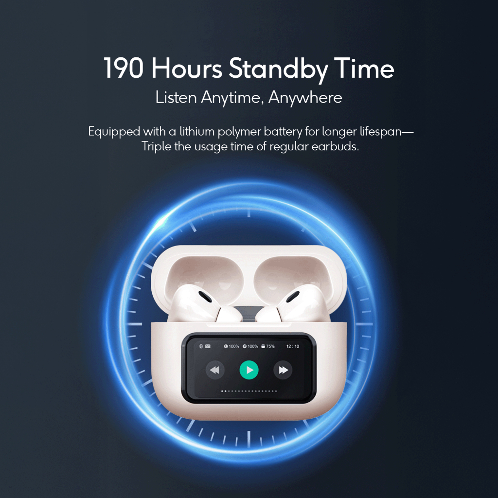 Kiip Dts16 Tws Anc Headset Bluetooth 5.4 Earphone Smart Screen Active Noise Reduction