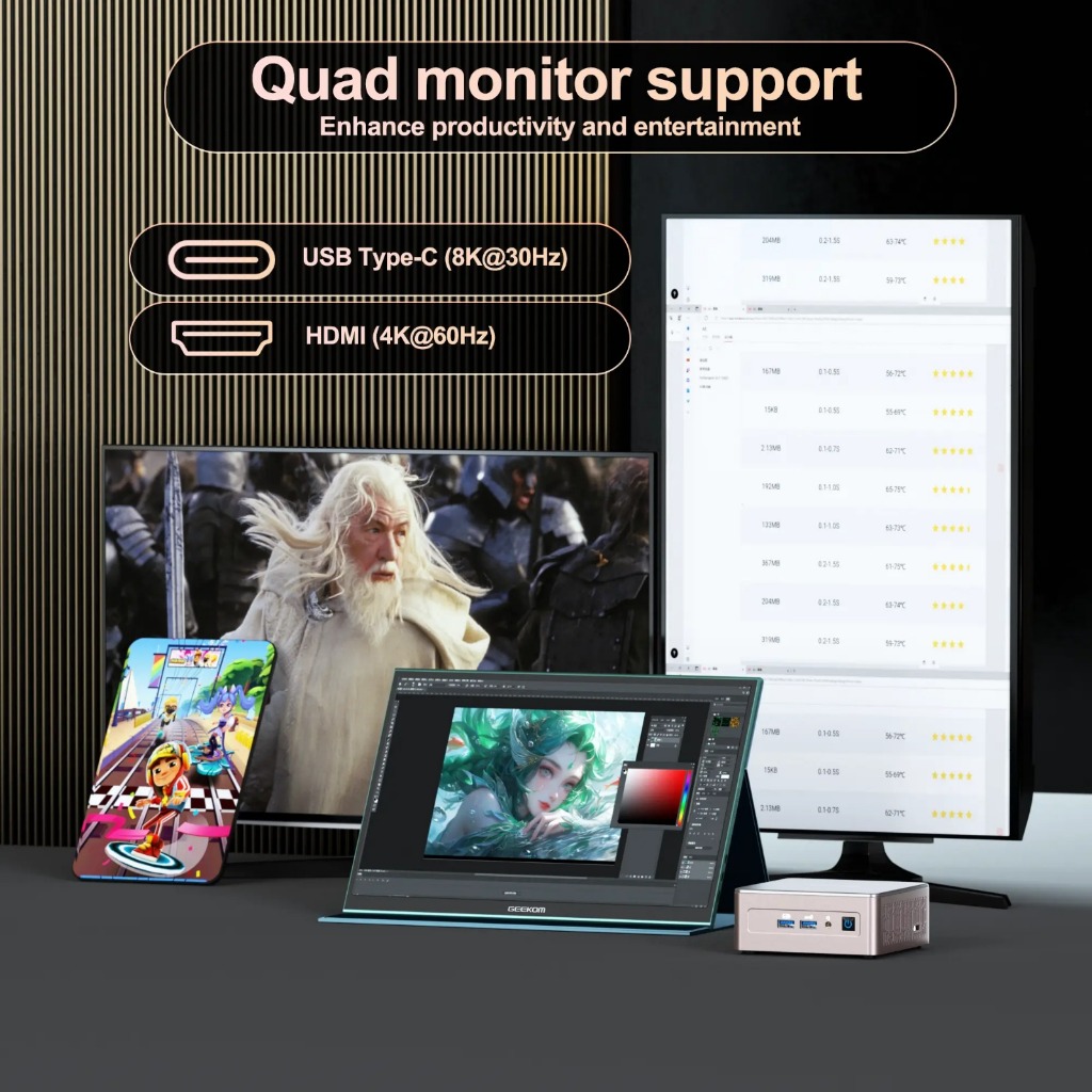 Mini PC Geekom Gaming A5 AMD Ryzen 7 5825U RAM 32GB DDR4 512SSD Windows 11 Pro 6 Upgradeable PC