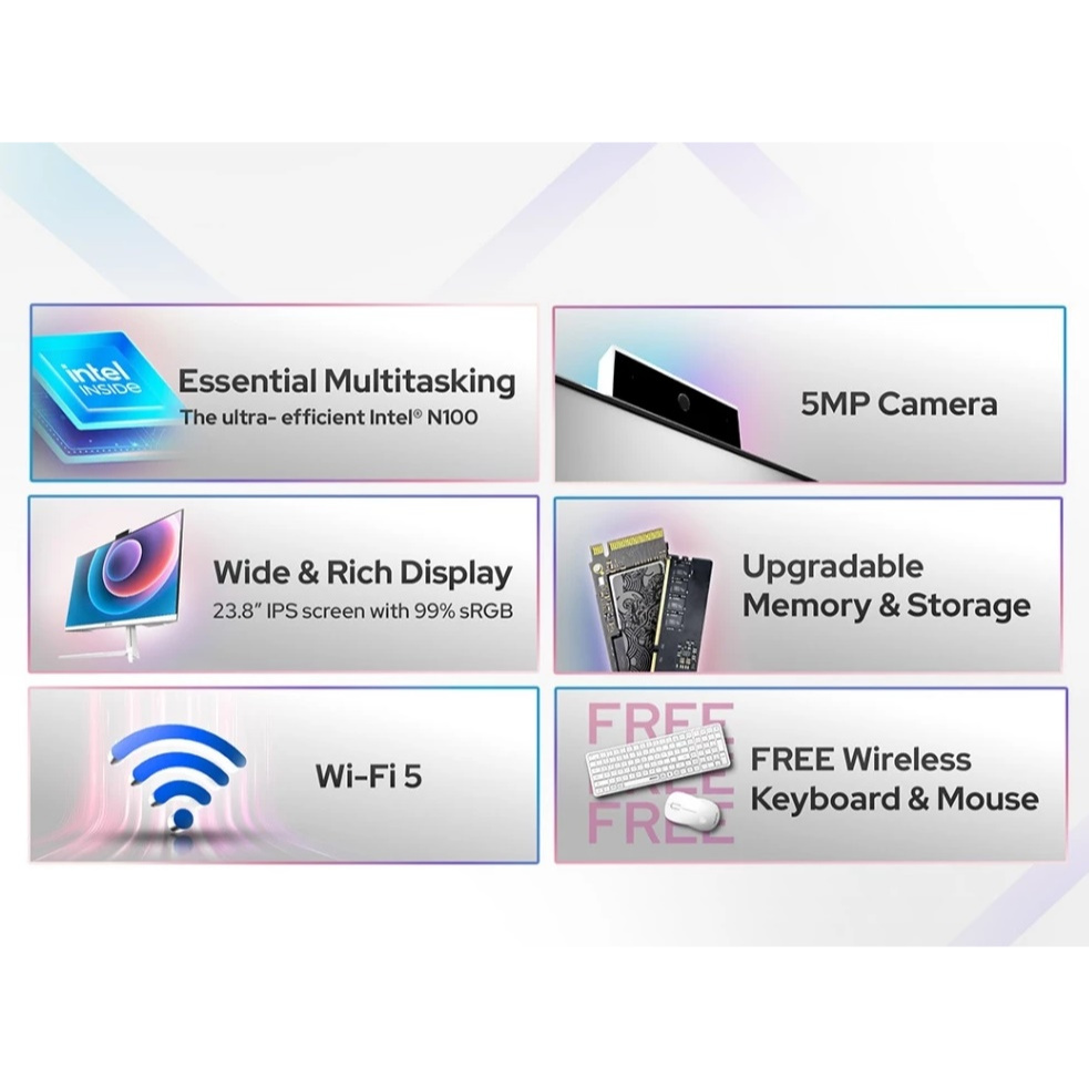 AXIOO Flex 1 All In One PC Intel N100 RAM16GB SSD1TB 23.8inc FHD Windows 11 Pro
