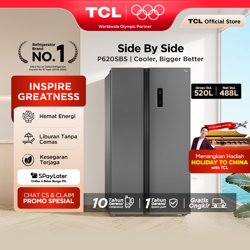 TCL Kulkas Side by Side 520L Inverter Anti Bunga Es P620SBS