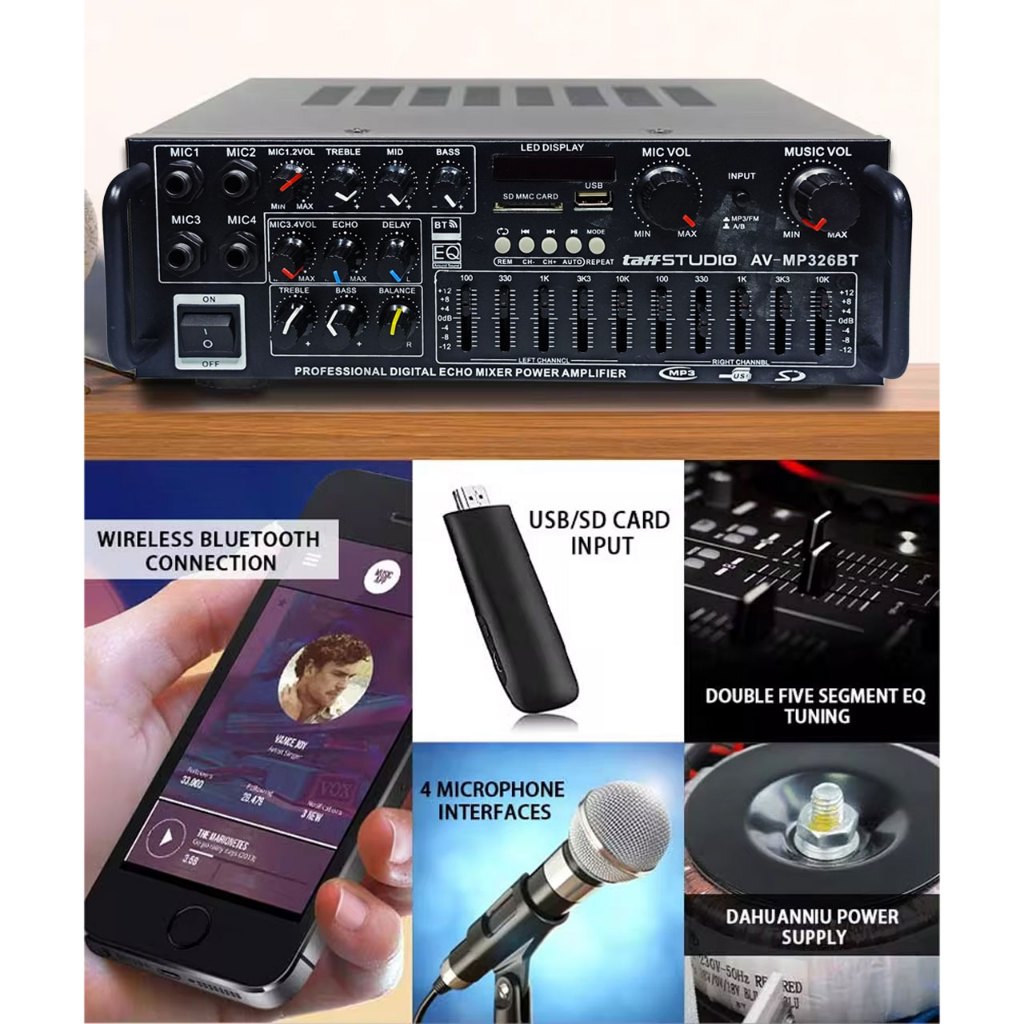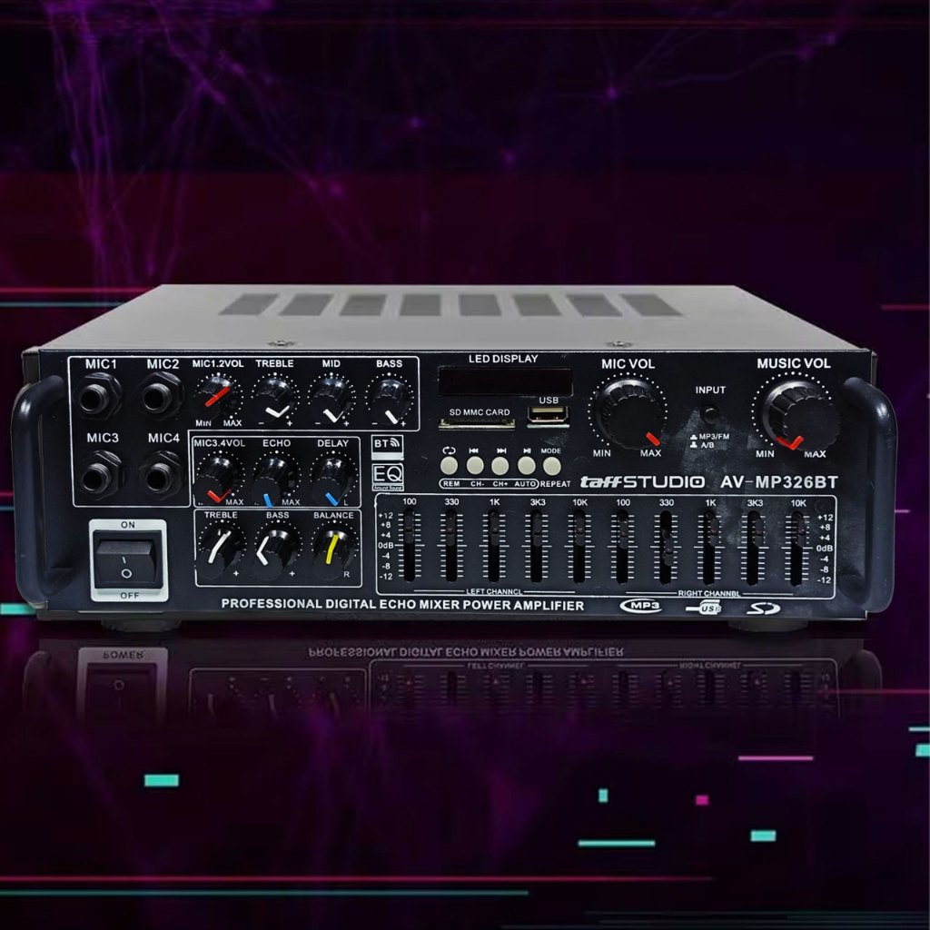 TaffSTUDIO Amplifier Mixer Audio Bluetooth USB Subwoofer Karaoke - AV-MP326BT - Black