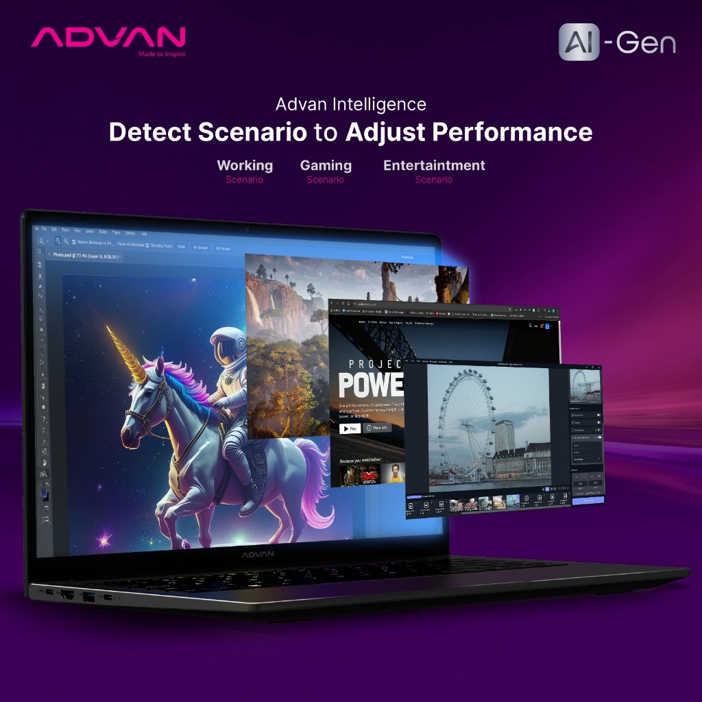ADVAN Laptop Ai Gen Ryzen 7 8845HS AMD Ryzen AI IPS 100 PERSEN sRGB 16GB 512GB Windows 11 HD716S05A